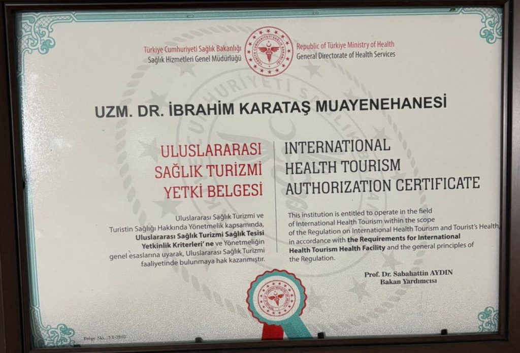 Op. Dr. İbrahim Karataş 1994 yılında Çukurova Üniversitesi Tıp Fakültesinden mezun olmuştur. Tıp fakültesi eğitimi sırasında Düsseldorf Üniversitesi Tıp Fakültesinde staj yapmış, sağlık alanında uluslararası birçok gelişmeyi takip etme fırsatı bulmuştur. 1995 yılında turizm doktorluğu eğitimi almıştır.